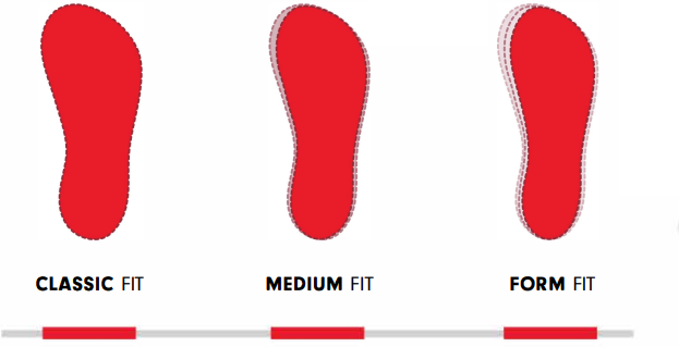 - Slim Footshape Fit - na tomto "nejužším" (avšak pořád poměrně prostorném) kopytě býval v nabídce například silniční model Rivera či univerzální Outroad, ani jeden se však již nevyrábí.