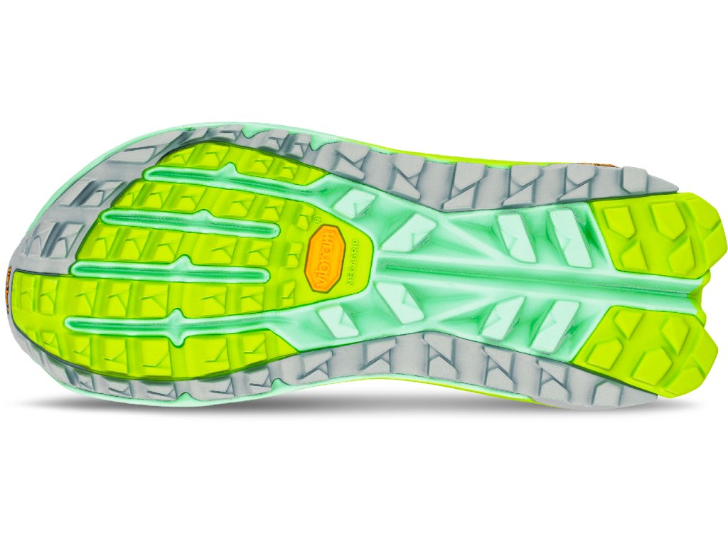 Podešev Vibram® Megagrip s novým vzorkem zaručuje přilnavost na suchu i mokru, větší stabilitu a vyšší odolnost. Nově přidaný polštářek v oblasti achilovky zvyšuje pohodlí při nazouvání i běhu. Nechybí ani GaiterTrap™, který umožňuje uchycení návleků bez nutnosti pásku pod botou – žádný štěrk ani jehličí v ponožkách.