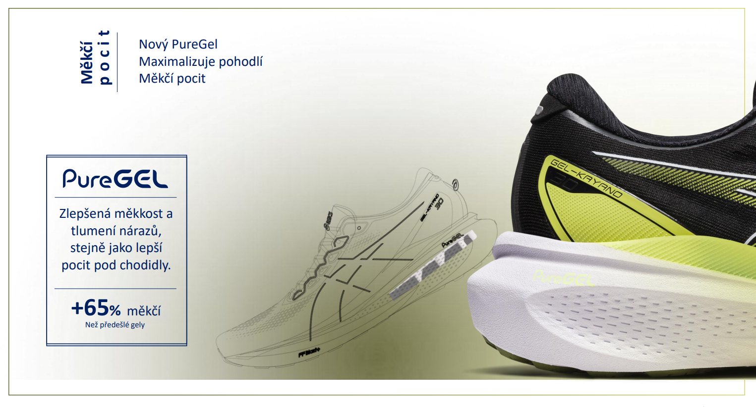 - MĚKČÍ GEL. Nový Pure Gel pro maximální pohodlí a měkčí pocit. Zlepšená měkkost a tlumení nárazů, stejně jako pocit pod nohama. O 65 % měkčí než předchozí gely.