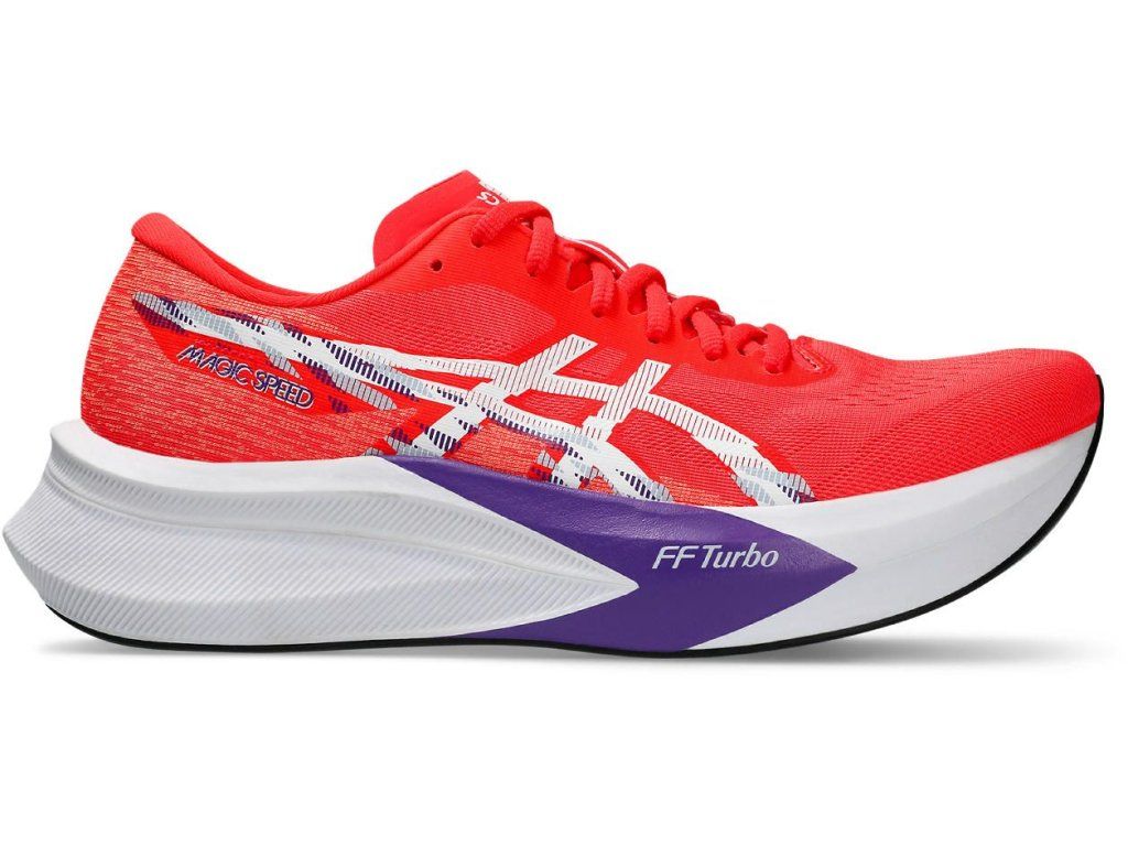 Asics Magic Speed 4 jsou pánské silniční závodní běžecké boty určené pro běžkyně, které chtějí spojit rychlost, lehkost a efektivní odraz. Čtvrtá generace navazuje na úspěšné předchozí modely a přináší vylepšené tlumení FF BLAST™ TURBO, které je lehčí a citlivější než klasické pěny. Díky tomu se každý krok mění v energický odraz s minimální ztrátou energie.