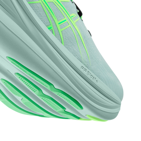 Podešev dostala nový vzorek, který přináší lepší trakci a vyšší odolnost. Kromě snížení hmotnosti to znamená i delší životnost boty při běhu na silnici. Nimbus je stále čistě silniční model – měkká FF Blast+ pěna a jednolitá podešev nejsou stavěné na ostrou šotolinu, kde by mohlo dojít k rychlejšímu opotřebení.