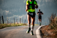 A je to tady! Konečně jsme se dostali k finálnímu stoupání v terénu. Cca 400 m, které nás mají zavést na vrchol a druhou stranou jsme měli seběhnout do cíle kousíček pod vrchol. Od Toma dostáváme info, že se jde přímo po cestě, po které kráčíme až do cíle, vrchol se už uzavřel, vítr se totiž stále stupňoval a sílil. Večer už na vršku funělo tak, že i chlapi jako hory tam měli problémy s vertikální pozicí. Človíčka u nájezdu do terénu se ještě ptám, ale se sklopenou hlavou a se znějícím NE v uších pokračuji tedy po asfaltu dál. To se už odmlčuji a musím se s tím trochu srovnat, abych se pak rozběhla a do finiše doběhla s kluky po boku a rozzářená jako ta moje čelovka. Na prvním místě v ženách!