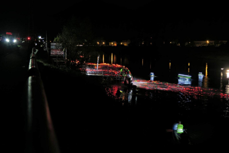 Zabalit se do neoprenových oblečků. Ztratit se v davu a v 5:30 z plošiny hupky dupky do vody. Do temného, líně se vinoucího Labe. Čeká mě 9 kilometrů plavání. Slibovaný proud chytám tak jednou, dvakrát, ale jinak makám a kochám se kontrastu temnoty vody a nebe plného hvězd. Ano jde to. Koryto řeky křižuji a uvědomuji si, že nohy začínají mrznout. První most vyhlížím a pořád nic, rozednívá se. Sem tam blikačka z pravé strany, občas z levé, pár teček přede mnou, plavu opuštěně je to nádherné. Ještě před týdnem jsem koštovala slanou atlantickou vodu a teď Labe.