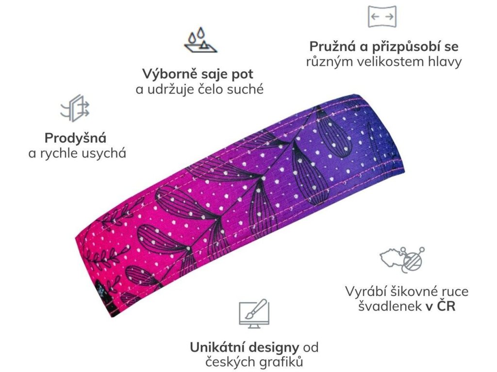 Čelenka je vyrobená z pružného materiálu, takže se perfektně přizpůsobí tvé hlavě. Je vhodná pro všechny sporty a aktivity, při kterých je potřeba držet vlasy na místě nebo zabránit stékání potu do očí.