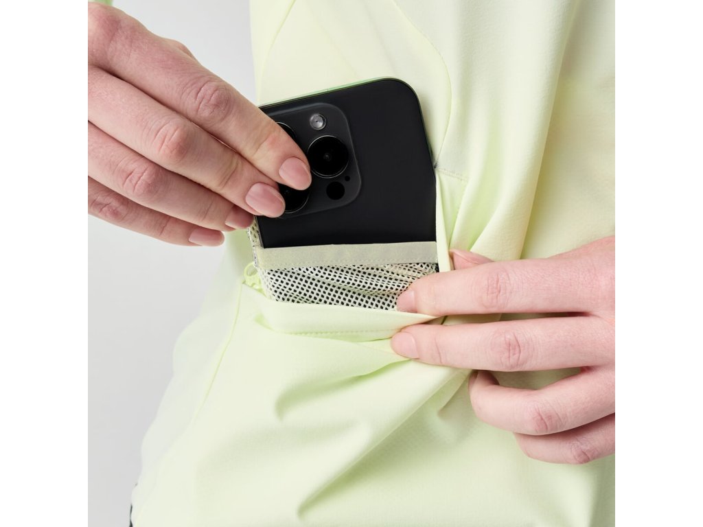 Prodyšné odvětrání na zadní části udržuje příjemnou teplotu i při vyšším tempu. Samozřejmostí jsou bezpečné kapsy na ruce s vnitřní přihrádkou na telefon, abys mohl/a běžet naplno s jistotou, že máš vše pod kontrolou.