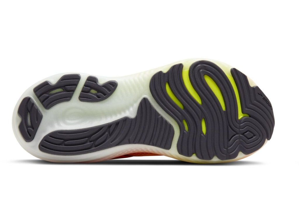 Brooks Glycerin 22 skrývá jádro závodní boty. Ale jen v přední části, tedy tam, kde oceníte dynamiku a výbušnost. Po stranách a v zadní části tlumící vrstvy ale pěna zůstává měkčí, stabilnější a línější. Přesně tak spolehlivá a příjemná jak čekáš u objemové boty. Rychlá pěna má u většiny variant kontrastní barvu, která prosvítá skrz naskrz celou botou, takže sami okamžitě vidíte, kde je bota rychlá a neposedná a kde naopak poddajná a stabilnější.