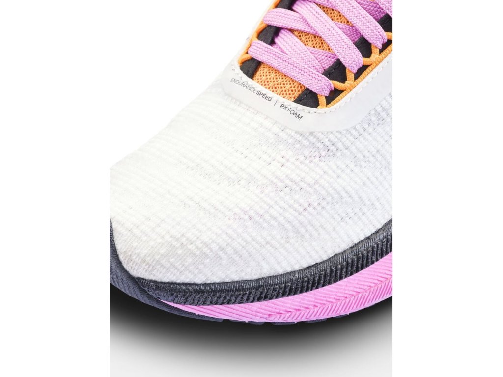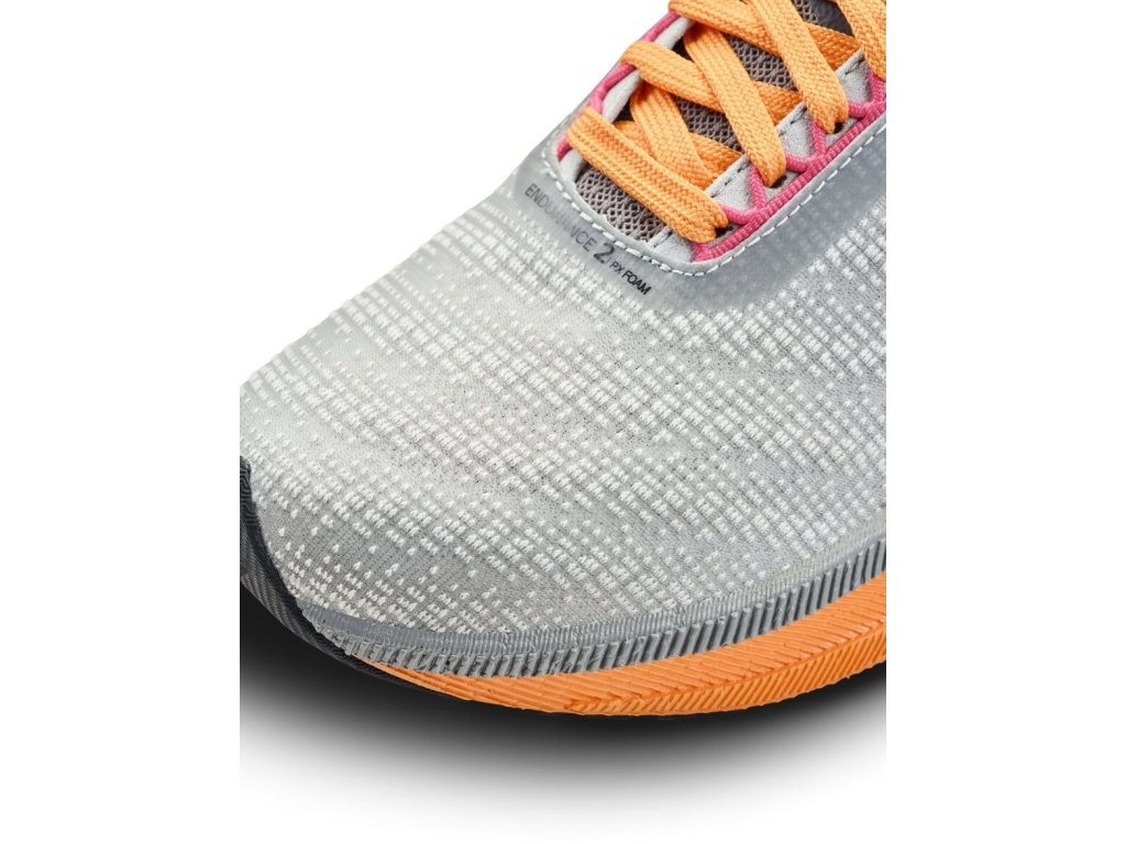 Agresivní geometrie, vysoká vrstva tlumení a především pěna PX s nekompromisní energetickou návratností. Tenhle koktejl zajistí maximální komfort a dokonale plynulý a rychlý přechod do odrazu. V Endurance 2 nebudeš chtít běžet pomalu, protože zrychlit tempo je tak strašně jednoduché. Když ale přece jen zařadíš nižší rychlost, tak tě podrží skvělé tlumení.