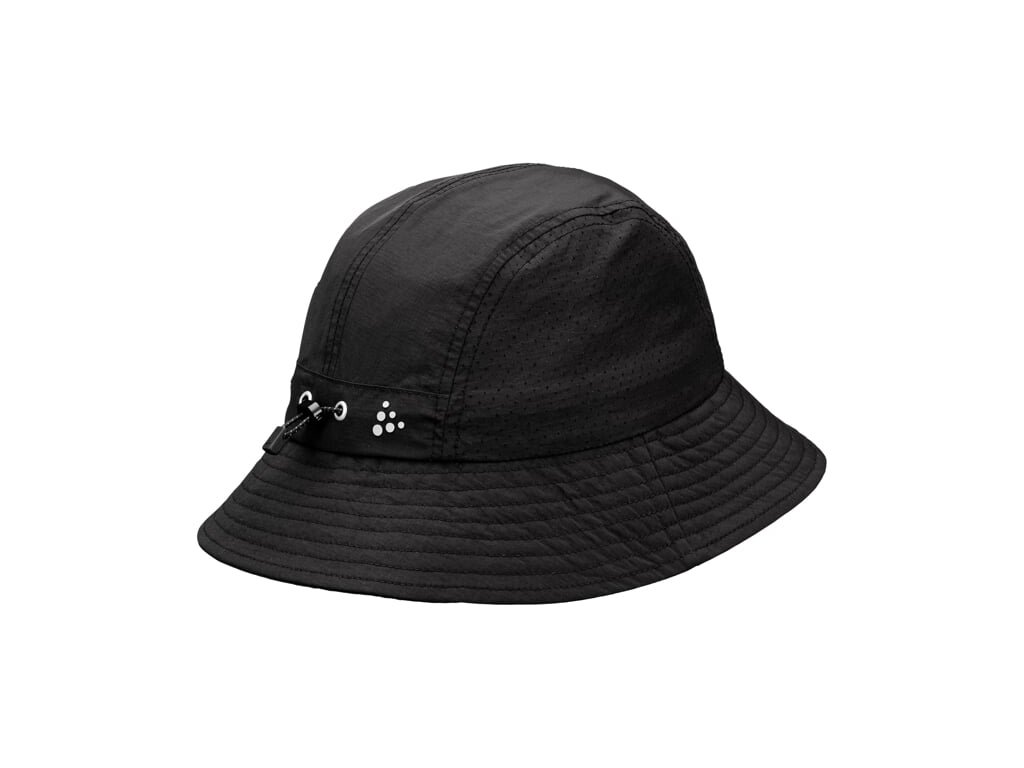 Klobouk CRAFT Hypervent Bucket Hat klasického střihu je vyroben z lehkého funkčního materiálu. Po stranách jsou meshové panely s perforací pro lepší ventilaci. Čelenka z vnitřní strany spolehlivě odvádí pot, který pak nestéká do obličeje. Obvod klobouku lze nastavit pomocí šňůrky, takže pevně drží na hlavě i ve velmi větrném počasí.