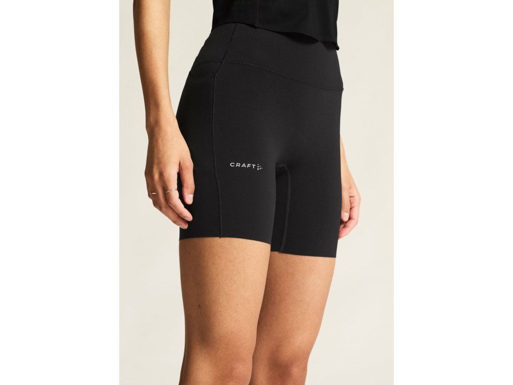 Elastické běžecké šortky CRAFT Hypervent jsou připraveny zvládnout i ty největší běžecké výzvy. Tenký, vysoce elastický materiál efektivně odvádí od těla vlhkost. I díky širokému elastickému pasu šortky skvěle padnou, zaručují vysoký komfort a podporu i při velmi intenzivním běhu. Příjemným benefitem je silikonový potisk z vnitřní strany nohaviček. Šortky díky tomu drží přesně na svém místě. Pro uložení výživy a dalších drobností slouží tři kapsy v bederní části. Mobilní telefon pohodlně schováte do kapsy na pravém stehně.