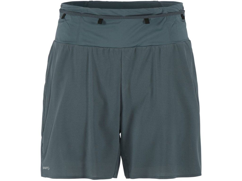 Pánské běžecké šortky 2 v 1 CRAFT PRO Trail jsou velmi lehké, prodyšné a poskytují spoustu kapes pro uložení výživy nebo jiných drobností.