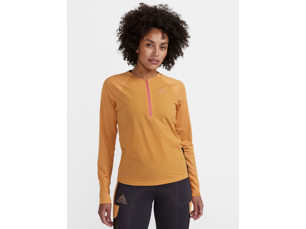 Dámské běžecké triko s dlouhým rukávem a větruodolnou přední částí PRO Trail Wind LS je určeno pro běh v chladnějším a hlavně větrnějším počasí.