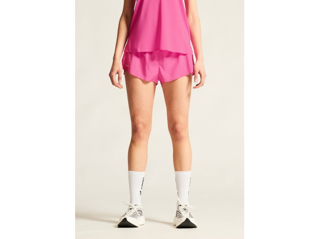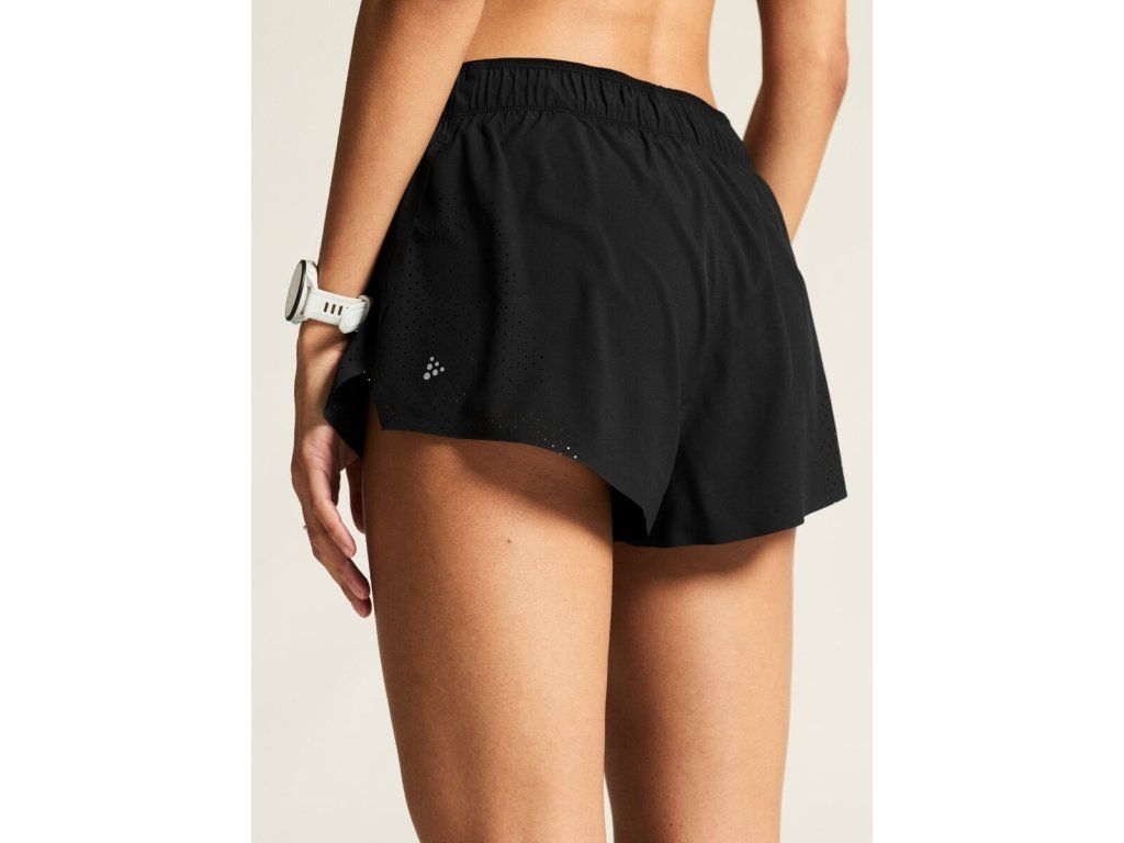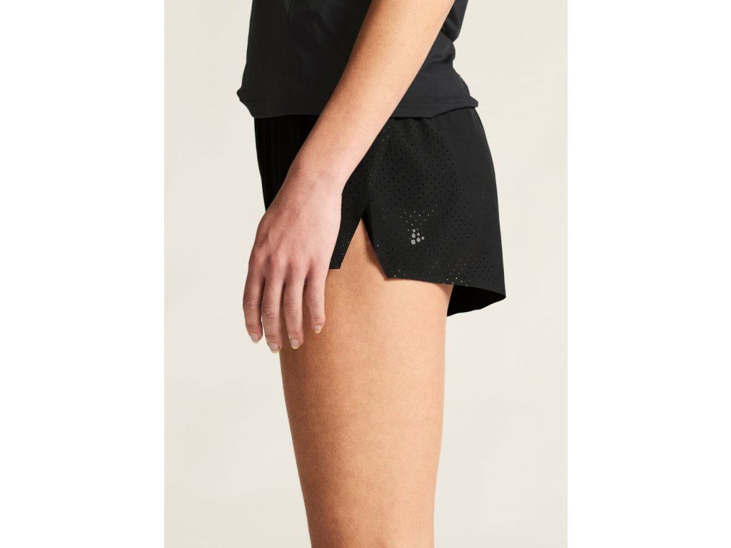 Elitní běžecké šortky CRAFT Race Day Split 2 svými vlastnostmi přispívají k překonávání limitů nejen elitním atletkám, ale i ostatním běžkyním, které hledají mimořádný produkt bez kompromisů. Jsou vyrobeny z vysoce funkčního materiálu s mimořádně efektivním odvodem vlhkosti, který zároveň disponuje vysokou prodyšností. Tu navíc podporuje perforace po stranách. Velmi lehké, elastické meshové vnitřní boxerky jsou také mimořádně prodyšné. Volnost pohybu i při velmi vysoké intenzitě umožňují vysoké rozparky po stranách vnějších šortek.