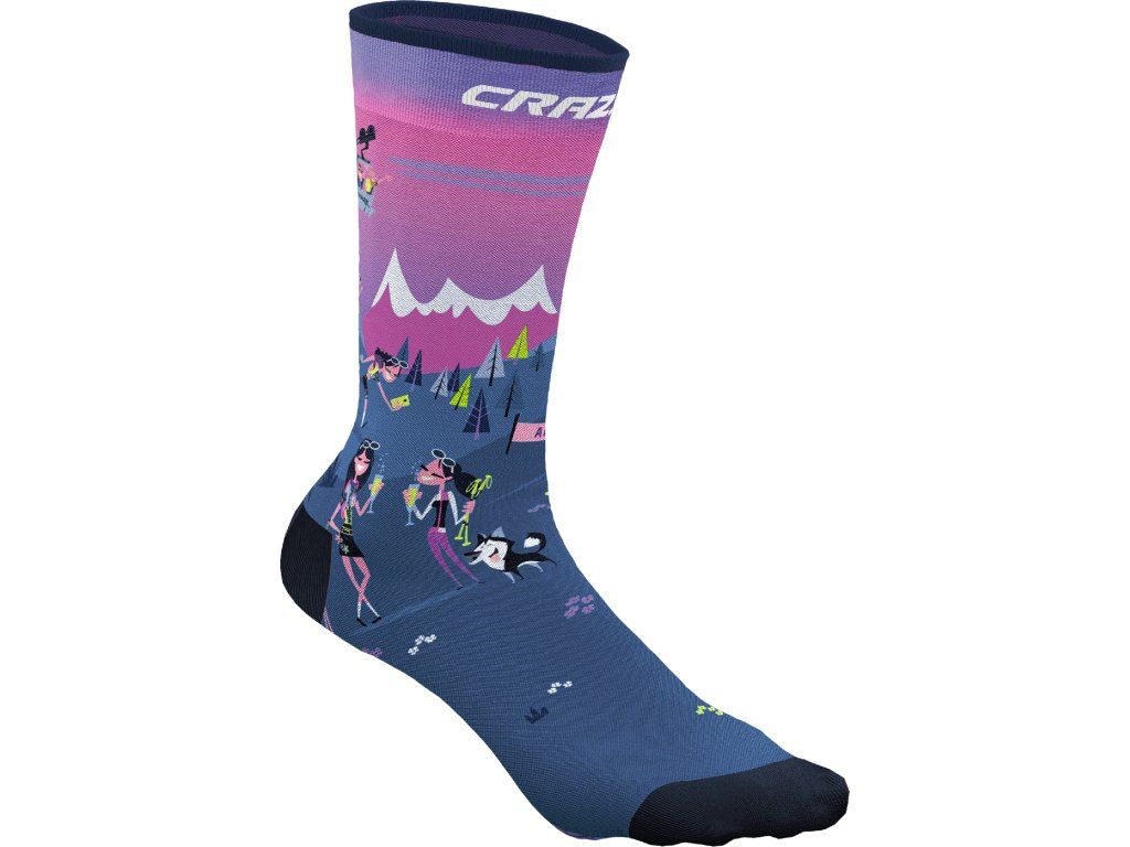 Ponožky CRAZY SOCKS v jedinečných designech! Lehký, elastický materiál poskytuje pohodlí a velmi rychle schne. Propracovaná konstrukce s patní částí drží ponožku na svém místě po celou dobu nošení. Výška kotníkového komínu je přibližně 15 cm. Vhodné na volnočasové aktivity a denní nošení.
