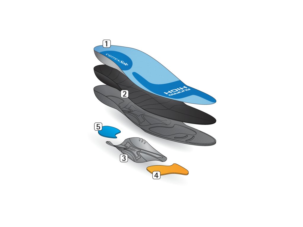 Vysoce vyklenutá chodidla – často slabě pohlcují rázy a přenášejí nárazové síly skrz chodidlo ke kolenům, kyčlím a zádům. Převážně supinují a jsou nepružné. Vložky CurrexSole® jsou tvořeny materiály Poron® a curEVA® určenými ke zlepšení absorpce nárazů a systém 3DBS pro vysokou klenbu rozděluje nárazovou zátěž. Doporučují se modré vložky.