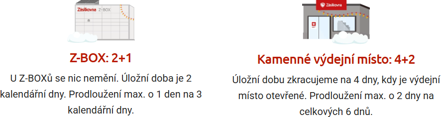 - 13:00 (Zásilkovna); pro zvýšení šance na co nejrychlejší dodání doporučujeme zvolit klasické výdejní místo Zásilkovny namísto Z-Boxu (obzvlášť v období před Vánocemi).