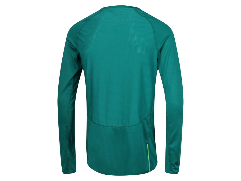 Extrémně lehké a super prodyšné tričko odvádí velmi rychle vlhkost od těla a neabsorbuje téměř žádnou vlhkost. Triko v podstatě schne za pohybu, přímo na těle. Základním materiálem trička je 100% polyester s antibakteriální úpravou Polygiene, které výrazně eliminuje zápach z potu. Dvojitý, tvarovaný límec ochraňuje krk před opruzeninami od popruhů batohu/vesty, samozřejmostí jsou reflexní doplňky kolem celého obvodu trička. UV ochrana UPF 30+. Prodloužené rukávy mají očka na palce.