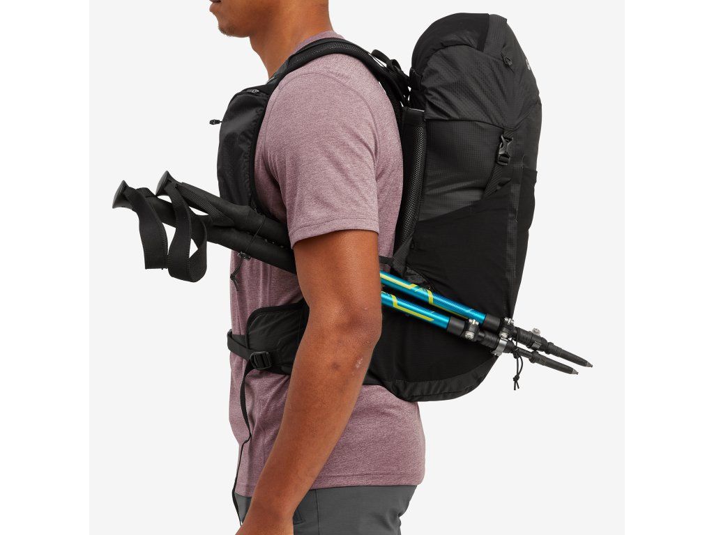 • podél předního panelu modulární systém háčků T-Hook k variabilnímu uchycení trekových holí vpředu nebo na boku, bungee systém uchycení, extra kompresní popruh