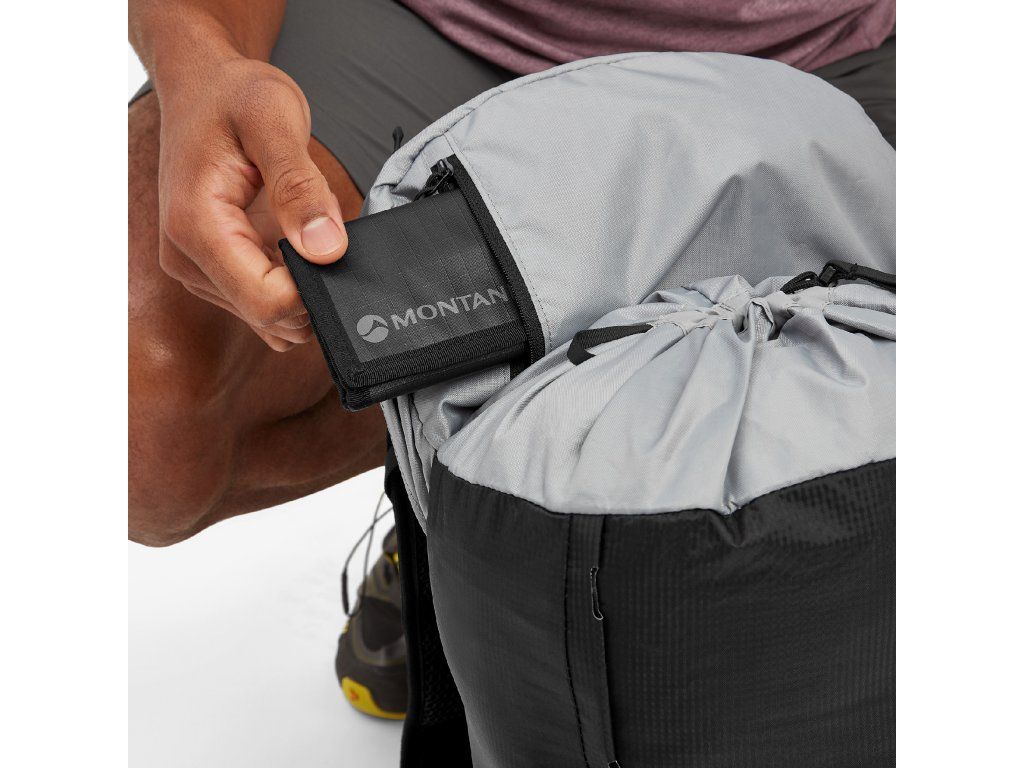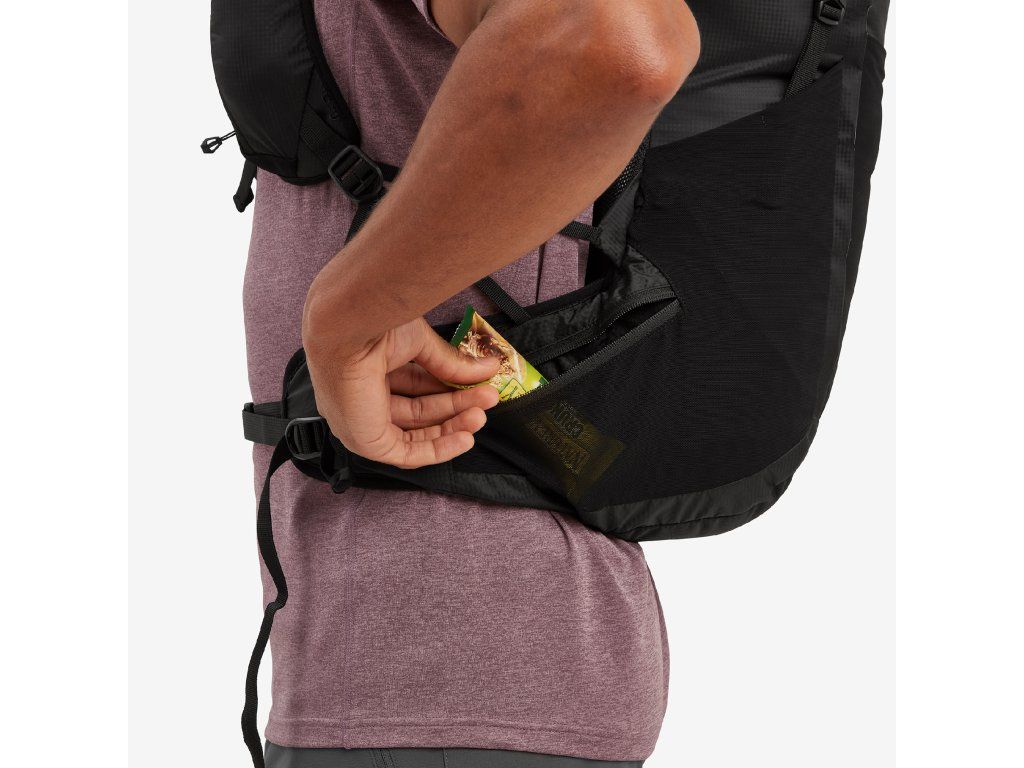 • Síťované kapsy – ze strečového a oděruodolného Power Mesh 80% Nylon (recyklovaný) 20% Elastan síťovina, roztažitelný ve 4 směrech