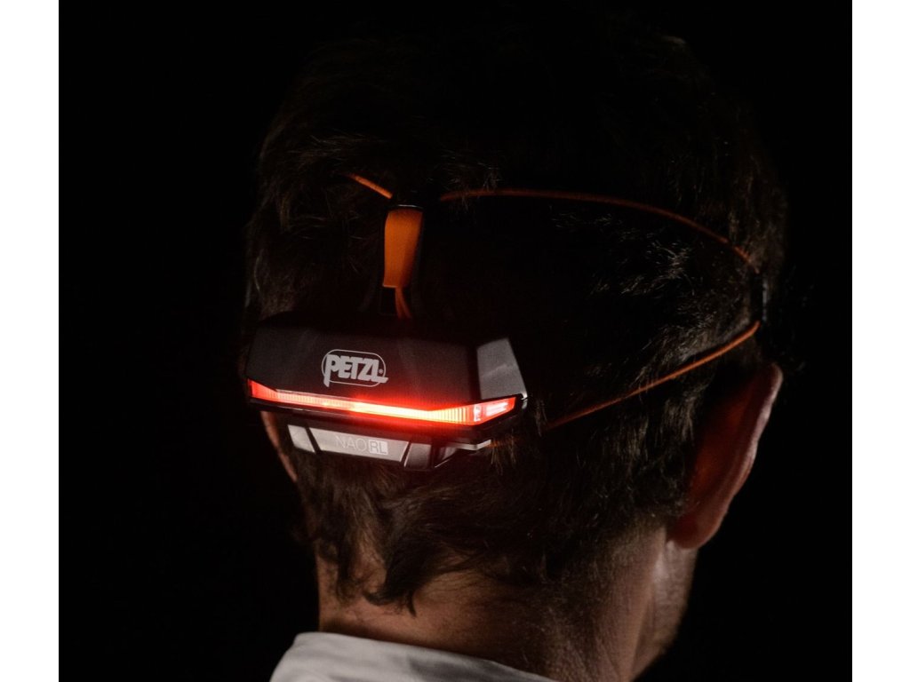 - Červené světlo na zadní straně čelovky, trvalé nebo blikající, se samostatným vypínačem, zvýší viditelnost uživatele a tím jeho bezpečnost