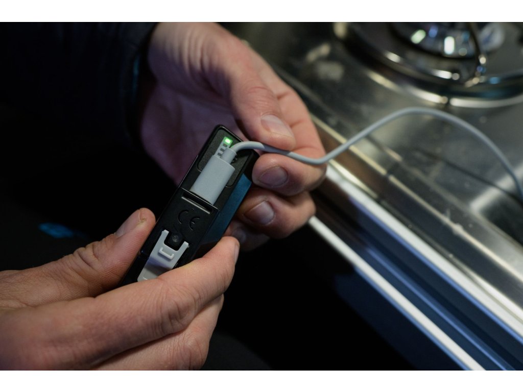 Dobíjecí Li-Ionový akumulátor s kapacitou 3200 mAh, dobíjecí pomocí USB portu typu C, který lze vyjmout ze zadní základové desky a používat samostatně jako power banku pro nabíjení jiných zařízení, jako např. hodinek nebo telefonu