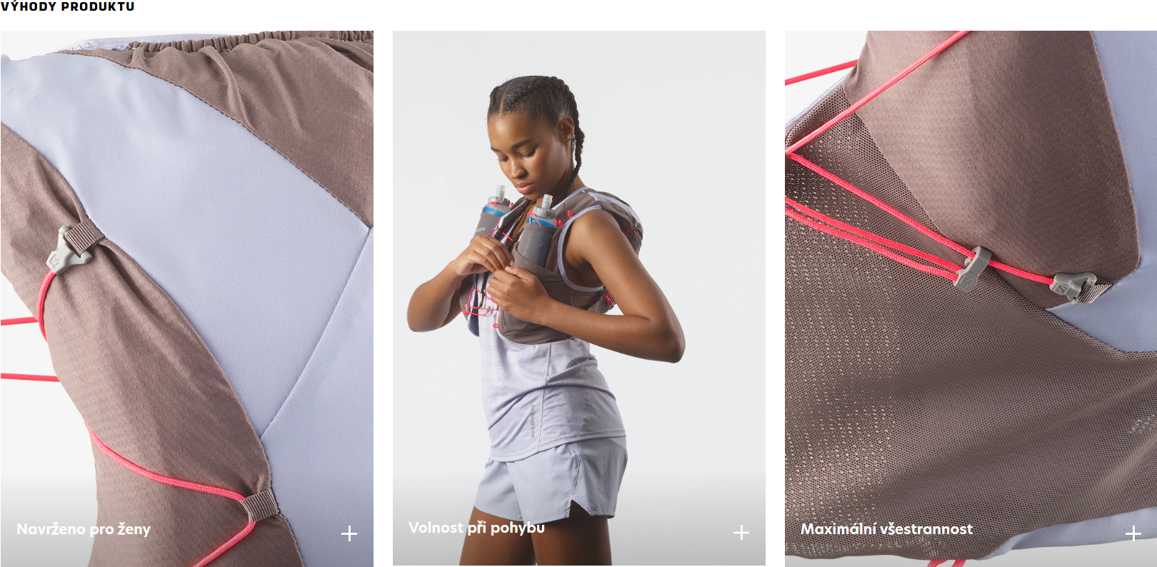 Popruhy přizpůsobené ženskému tělu: Popruhy navržené na míru ženské morfologii s kratším zádovým panelem a popruhy, stejně jako s upraveným tvarem a úhlem v oblasti krku.HYDRATACE