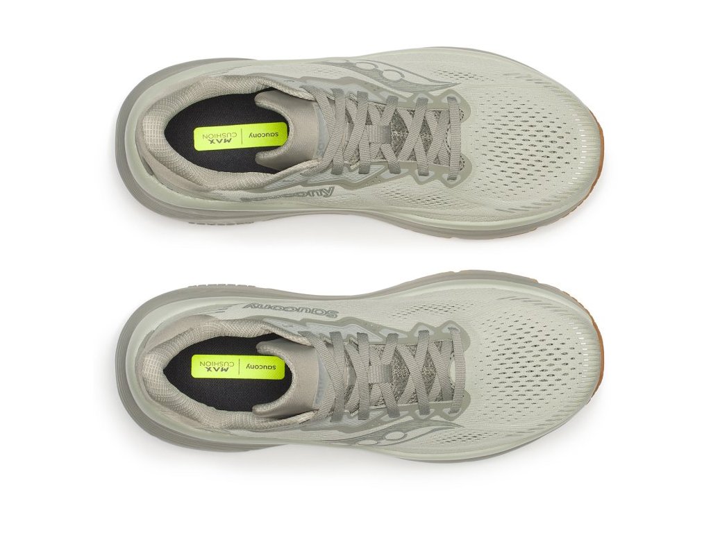 Saucony je americká značka běžecké obuvi a oblečení, která je na trhu už od roku 1898. Svůj název získala díky řece Saucony Creek, na jejímž břehu vznikla první výrobna těchto legendárních bot. Tahle řeka se také objevila na logu, které symbolizuje nekonečný běh vody a balvany, které dělí její koryto. Saucony vyrábí trailové boty, univerzální běžecké boty i závodní modely. Kromě nich v nabídce najdete také městské boty z kolekce Originals.