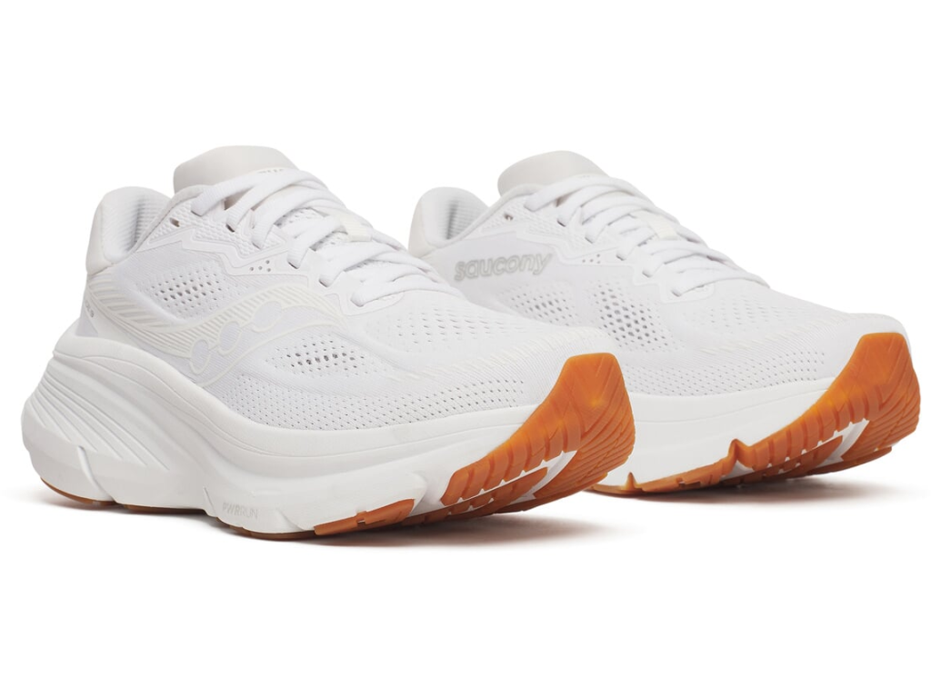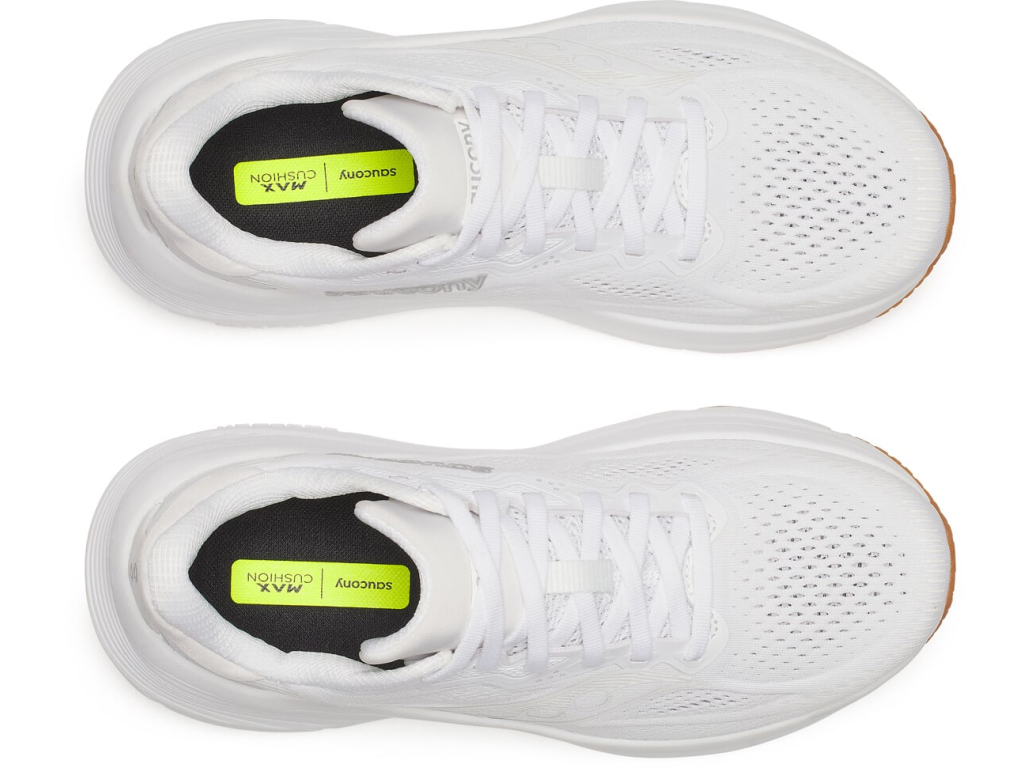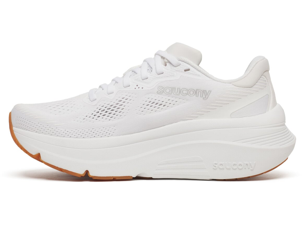 Saucony je americká značka běžecké obuvi a oblečení, která je na trhu už od roku 1898. Svůj název získala díky řece Saucony Creek, na jejímž břehu vznikla první výrobna těchto legendárních bot. Tahle řeka se také objevila na logu, které symbolizuje nekonečný běh vody a balvany, které dělí její koryto. Saucony vyrábí trailové boty, univerzální běžecké boty i závodní modely. Kromě nich v nabídce najdete také městské boty z kolekce Originals.