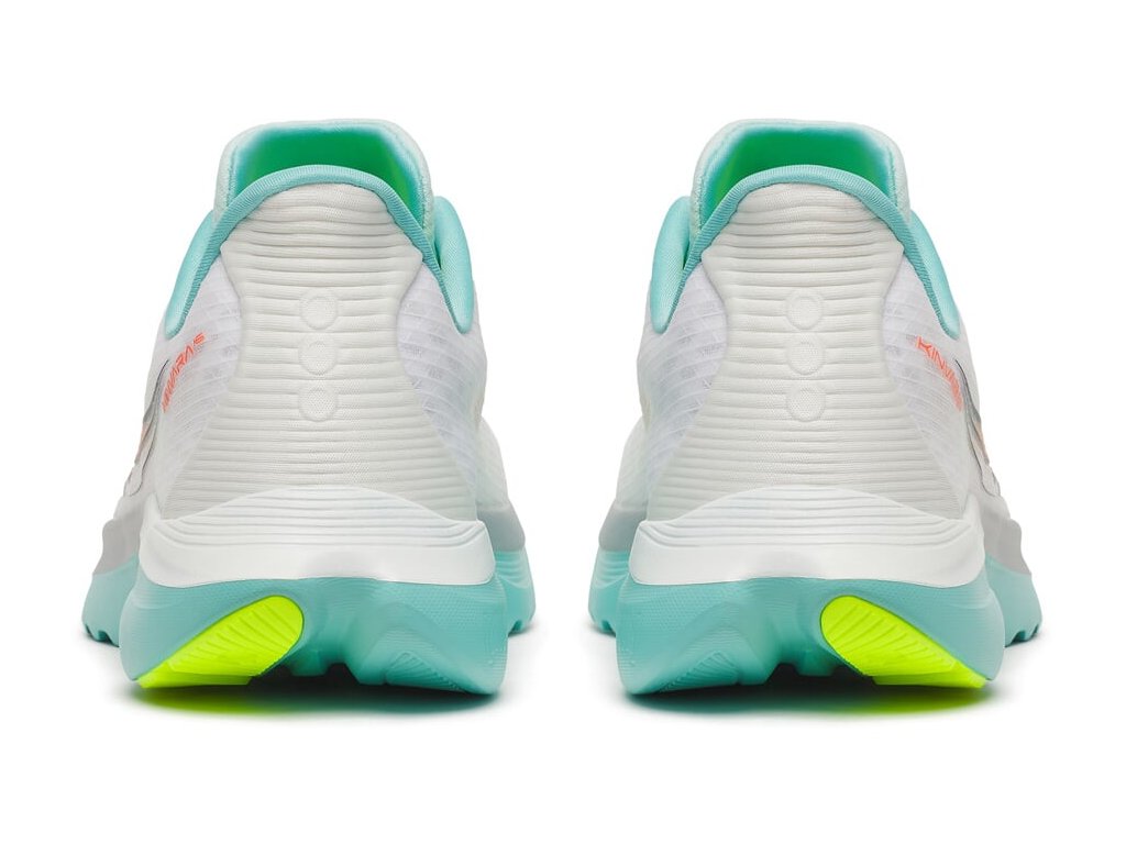 Nová geometrie s nižší boční stěnou a rovnější střední částí podešve na vnitřní straně, navržená pro plynulejší přechod a větší pohodlí při zrychlování.