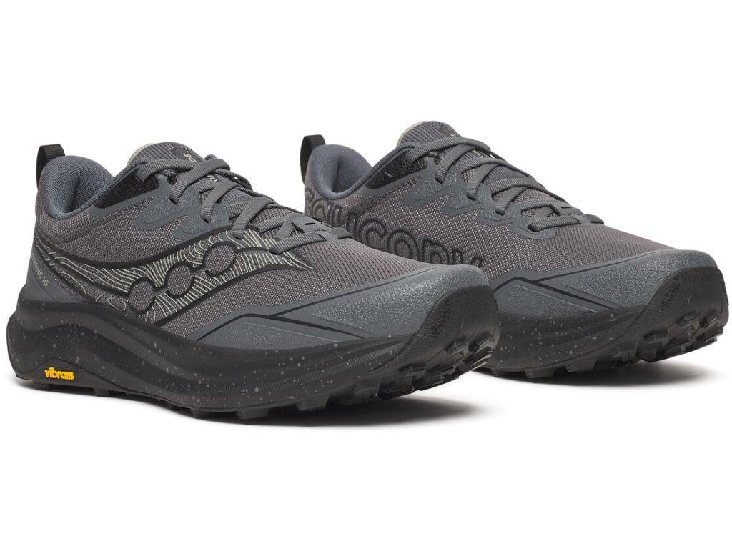 Saucony je americká značka běžecké obuvi a oblečení, která je na trhu už od roku 1898. Svůj název získala díky řece Saucony Creek, na jejímž břehu vznikla první výrobna těchto legendárních bot. Tahle řeka se také objevila na logu, které symbolizuje nekonečný běh vody a balvany, které dělí její koryto. Saucony vyrábí trailové boty, univerzální běžecké boty i závodní modely. Kromě nich v nabídce najdete také městské boty z kolekce Originals.