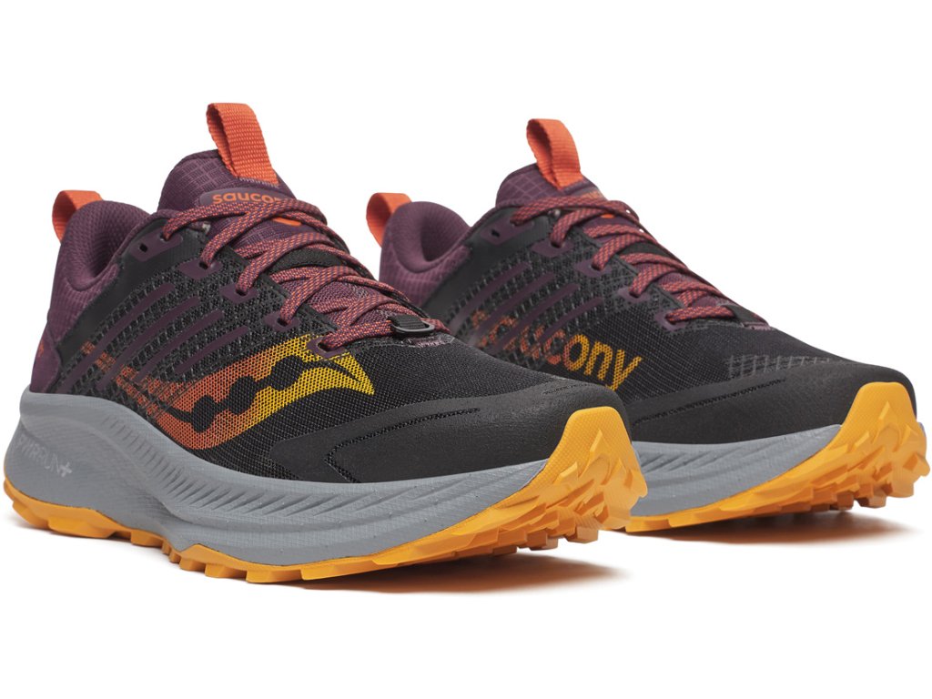 Saucony je americká značka běžecké obuvi a oblečení, která je na trhu už od roku 1898. Svůj název získala díky řece Saucony Creek, na jejímž břehu vznikla první výrobna těchto legendárních bot. Tahle řeka se také objevila na logu, které symbolizuje nekonečný běh vody a balvany, které dělí její koryto. Saucony vyrábí trailové boty, univerzální běžecké boty i závodní modely. Kromě nich v nabídce najdete také městské boty z kolekce Originals.