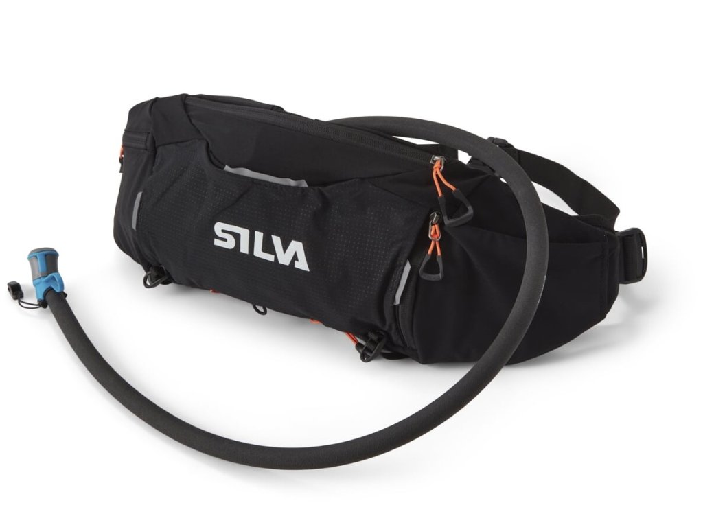 Silva Flex Belt 10 je propracovaná ledvinka do které toho nejen hodně sbalíte, ale součástí je i 1,5l hydratační vak s izolovanou hadicí. Nosný systém Embrance rovnoměrně rozloží zátěž při dlouhých aktivitách a měkká síťovina zádového systému dobře odvádí pot. Kromě vývodu hadice hydratačního vaku je ve vrchní části i vývod napájecího kabelu čelovky. Hlavní kapsa má samostatnou část pro 1,5l vak od renovované značky HydraPak, s širokým uzávěrem pro snadné plnění a jednoduchou údržbu. Hadice je od vaku oddělitelná, to je praktické pro doplňováni tekutin a proplachování samotné hadice při čištění. Hadici můžete zafixovat k bundě pomocí dodané spony, nebo si můžete dokoupit magnetický držák Nagnetic Hose Mount 38443. Hydratační vak je vyroben z materiálu neobsahujícího BPA a PVC a může se plnit tekutinou do 60°C. Uvnitř hlavní kapsy je menší na zip uzavíratelná kasa s háčkem na klíče. Na bocích jsou dvě síťované kapsy, jedna zipová a druhá volně přístupná, do zadní síťované kapsy můžete vložit větrovku, pod síťovanou kapsou se nachází další kapsa na zip. Na spodní vnější části ledvinky se nachází fixační popruhy a elastický stahovací systém.