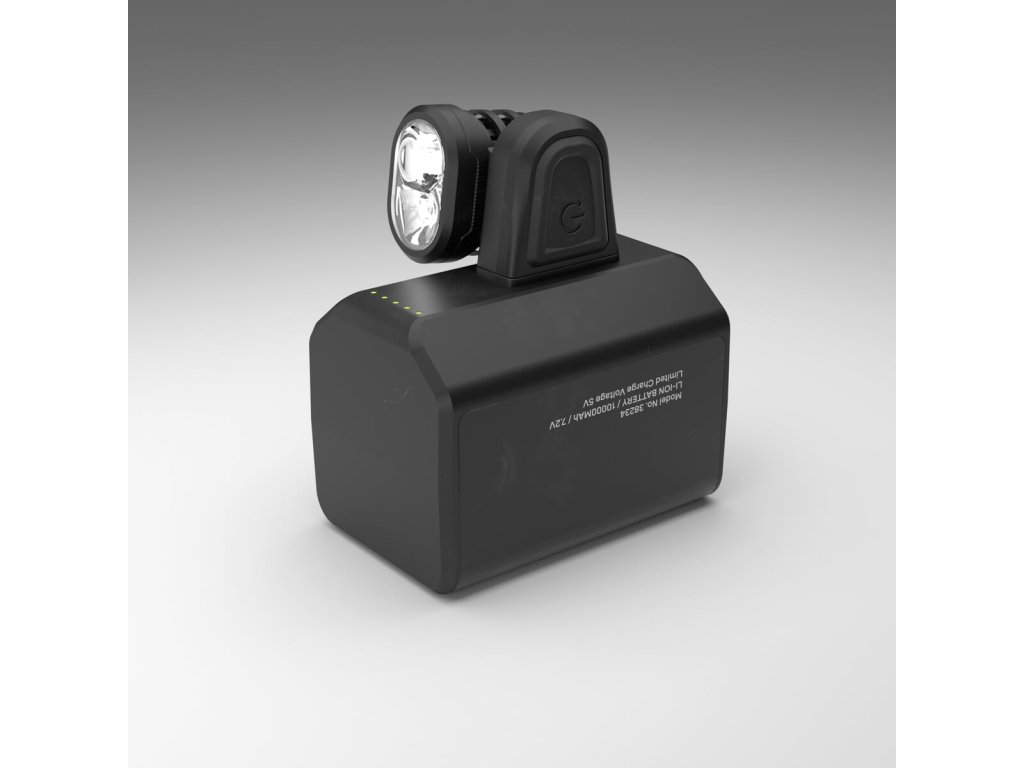 Obsah balení Free 2000 L: reflektor 2000 lm, baterie 72Wh, čelenka, prodlužovací 130 cm kabel s textilním opletem