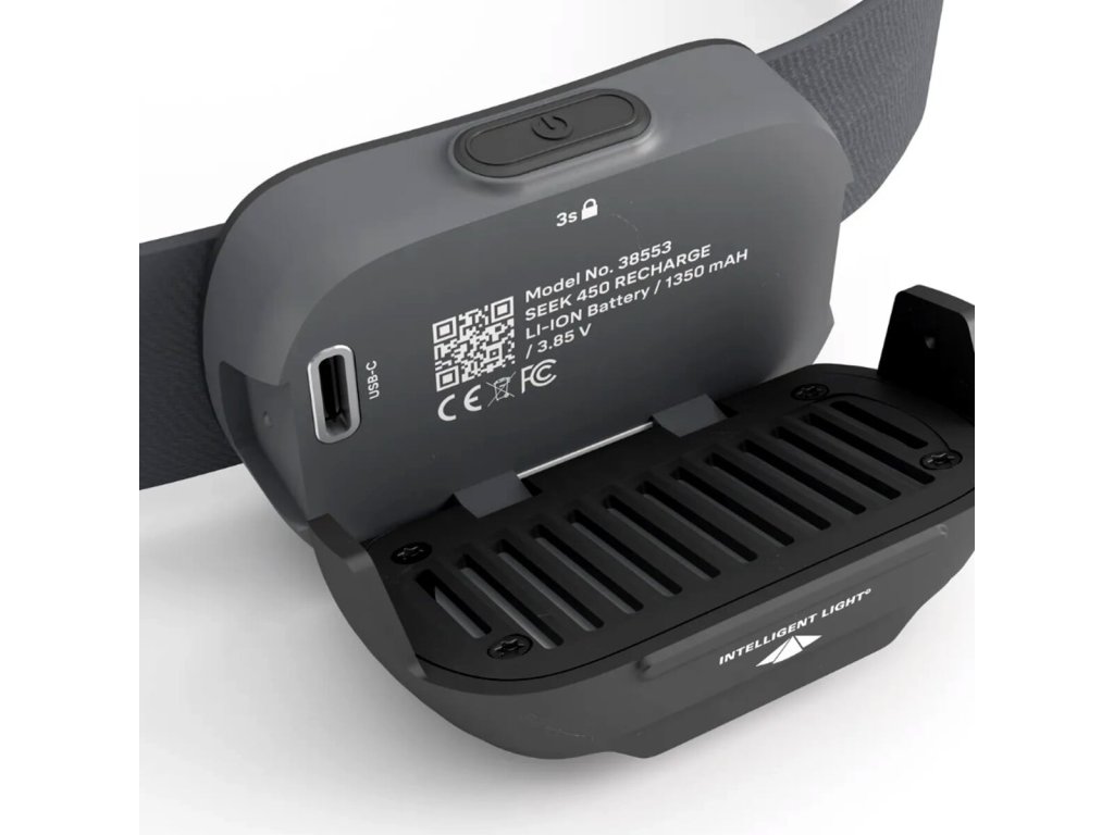 SEEK 450 s integrovanou dobíjecí Li-Ion baterií a 450 lumeny, je nejvýkonnějším modelem řady kompaktních čelovek Seek. Technologie Silva Intelligent Light - dvě bílé diody díky optice čoček rovnoměrně prosvítí prostor do dálky i stran, červená dioda pro tlumené, okolí nerušící svícení. Indikace stavu baterie formou zelené a červené diody, svítí-li po vypnutí čelovky zelená dioda, je stav baterie nad 50%, červená dioda indikuje kapacitu baterie pod 50%. Ve výklopné části svítilny je zabudovaný pasivní hliníkový chladič. Praktický zámek tlačítka proti nechtěnému zapnutí čelovky. Komfortní elastická čelenka je 25 mm široká a z vnitřní strany má silikonový střed pro lepší stabilitu na hlavě, o nastavení obvodu se starají dvě rychlonastavitelné spony. Seek 450 odolává tryskající vodě ze všech stran - IPX5. Jako hlavní materiál byly použity recyklované plasty. Celková hmotnost čelovky je 70 g. Prodloužená záruka 5 let na čelovku a 2 roky na baterii.