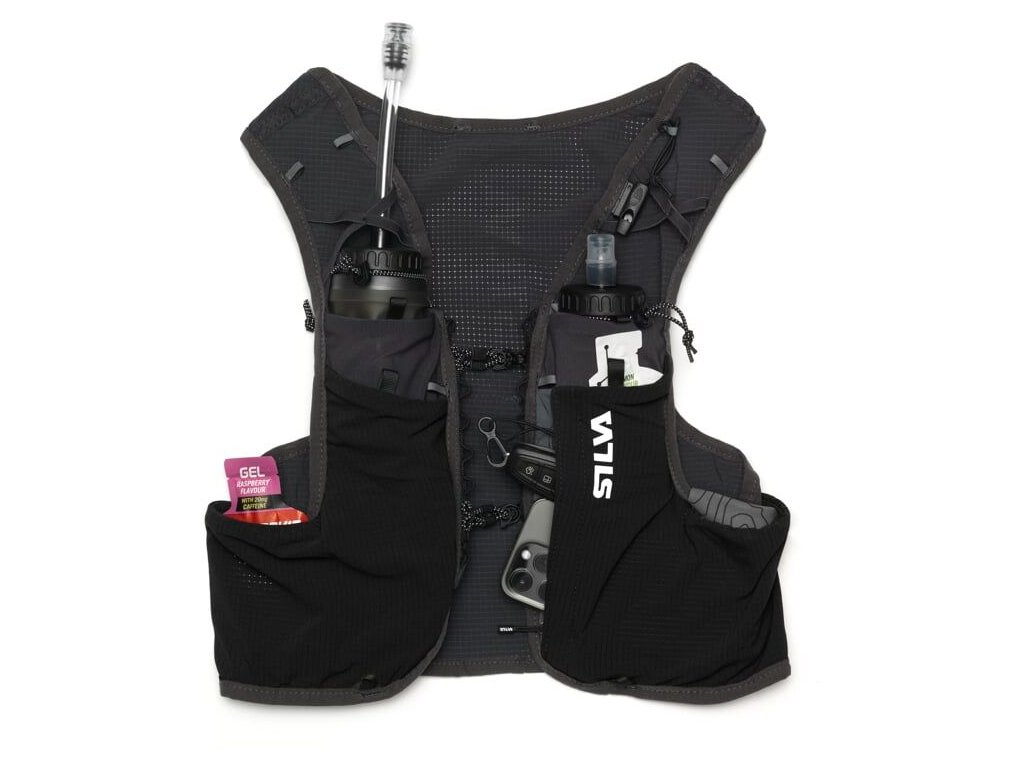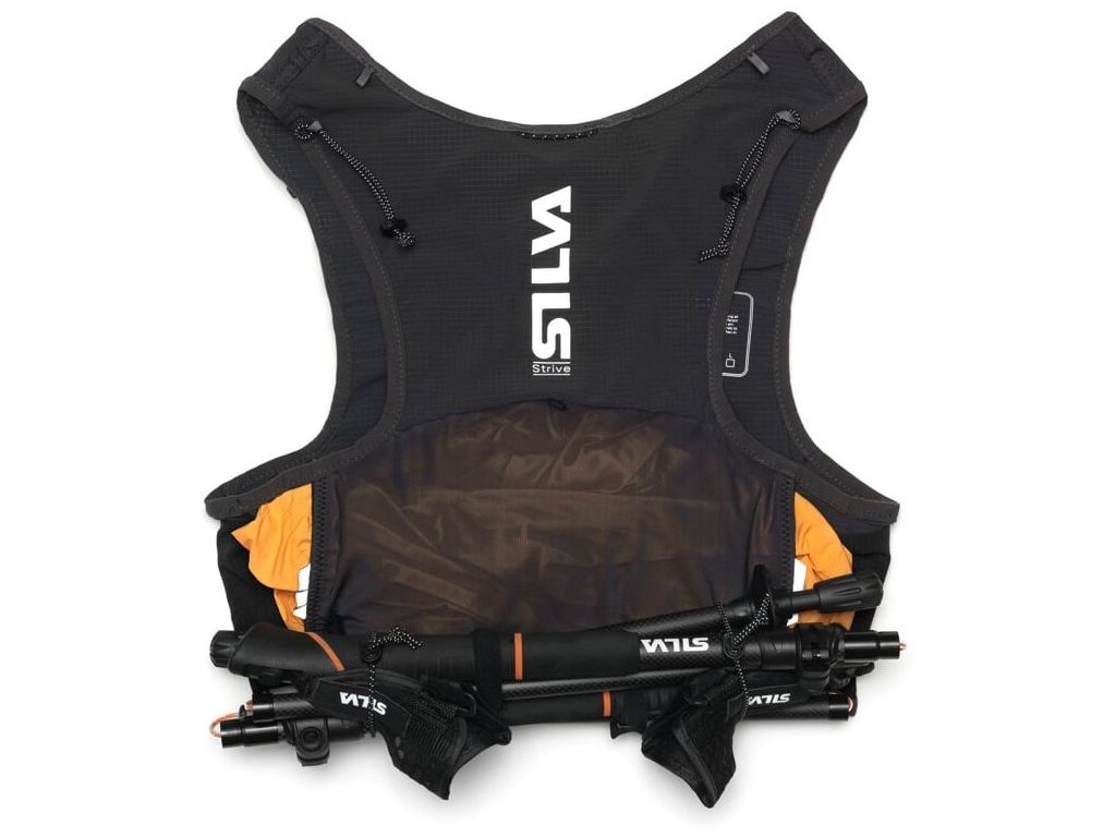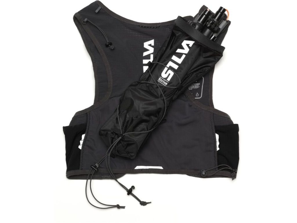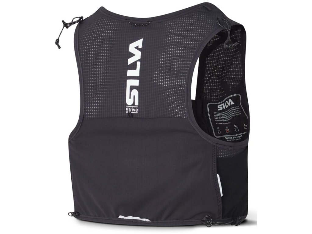 Běhej nebo leť s ultralehkou vestou Silva Strive Fly o hmotnosti pouhých 113g (vel. XS). Je vyrobena z měkkého lehkého ripstop nylonu a prodyšné síťoviny, je vybavena mnoha chytrými kapsami a elastickými poutky pro přichycení běžeckých holí. Na přední straně má vesta dvě kapsy na láhve o objemu 500ml (dodávají se samostatně) a menší kapsy na tyčinky, gely a jiné drobnosti. Jedna z čelních kapes je zipová s háčkem na klíče a uložení telefonu. Na bocích jsou dvě kapsy a na zádech je ve spodní části podélná kapsa přístupná z obou stran. Vesta je vybavena nouzovou píšťalkou a reflexními prvky.
