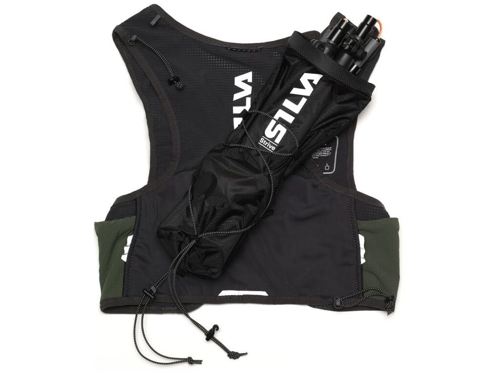Běhej nebo leť s ultralehkou vestou Silva Strive Fly o hmotnosti pouhých 113g (vel. XS). Je vyrobena z měkkého lehkého ripstop nylonu a prodyšné síťoviny, je vybavena mnoha chytrými kapsami a elastickými poutky pro přichycení běžeckých holí. Na přední straně má vesta dvě kapsy na láhve o objemu 500ml (dodávají se samostatně) a menší kapsy na tyčinky, gely a jiné drobnosti. Jedna z čelních kapes je zipová s háčkem na klíče. Na bocích jsou dvě kapsy a na zádech je ve spodní části podélná kapsa přístupná z obou stran. Vesta je vybavena nouzovou píšťalkou a reflexními prvky.