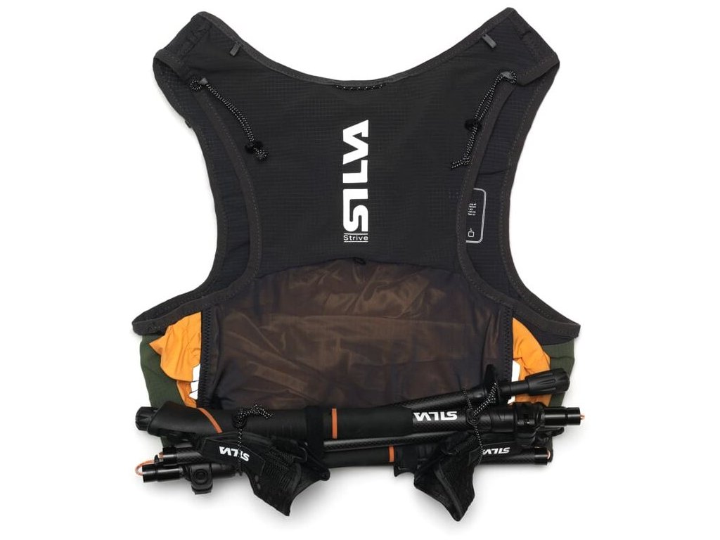 Běhej nebo leť s ultralehkou vestou Silva Strive Fly o hmotnosti pouhých 113g (vel. XS). Je vyrobena z měkkého lehkého ripstop nylonu a prodyšné síťoviny, je vybavena mnoha chytrými kapsami a elastickými poutky pro přichycení běžeckých holí. Na přední straně má vesta dvě kapsy na láhve o objemu 500ml (dodávají se samostatně) a menší kapsy na tyčinky, gely a jiné drobnosti. Jedna z čelních kapes je zipová s háčkem na klíče. Na bocích jsou dvě kapsy a na zádech je ve spodní části podélná kapsa přístupná z obou stran. Vesta je vybavena nouzovou píšťalkou a reflexními prvky.