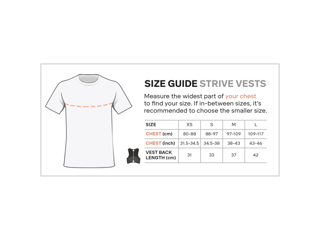 Běhej nebo leť s ultralehkou vestou Silva Strive Fly o hmotnosti pouhých 113g (vel. XS). Je vyrobena z měkkého lehkého ripstop nylonu a prodyšné síťoviny, je vybavena mnoha chytrými kapsami a elastickými poutky pro přichycení běžeckých holí. Na přední straně má vesta dvě kapsy na láhve o objemu 500ml (dodávají se samostatně) a menší kapsy na tyčinky, gely a jiné drobnosti. Jedna z čelních kapes je zipová s háčkem na klíče. Na bocích jsou dvě kapsy a na zádech je ve spodní části podélná kapsa přístupná z obou stran. Vesta je vybavena nouzovou píšťalkou a reflexními prvky.